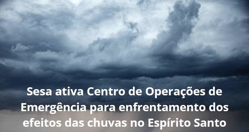 A Secretaria da Saúde (Sesa), diante dos recentes eventos de instabilidade climática no Espírito Santo, ativou o Centro de Operações de Emergência em Saúde (COE/SESA) – a publicação está na edição extra do Diário Oficial do Estado, desta quarta-feira (21).